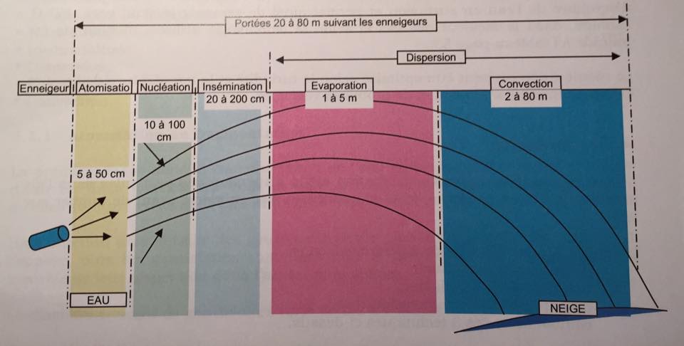 Voyons maintenant comment la neige de culture est produite. La formation de la neige de culture se fait en plusieurs étapes: